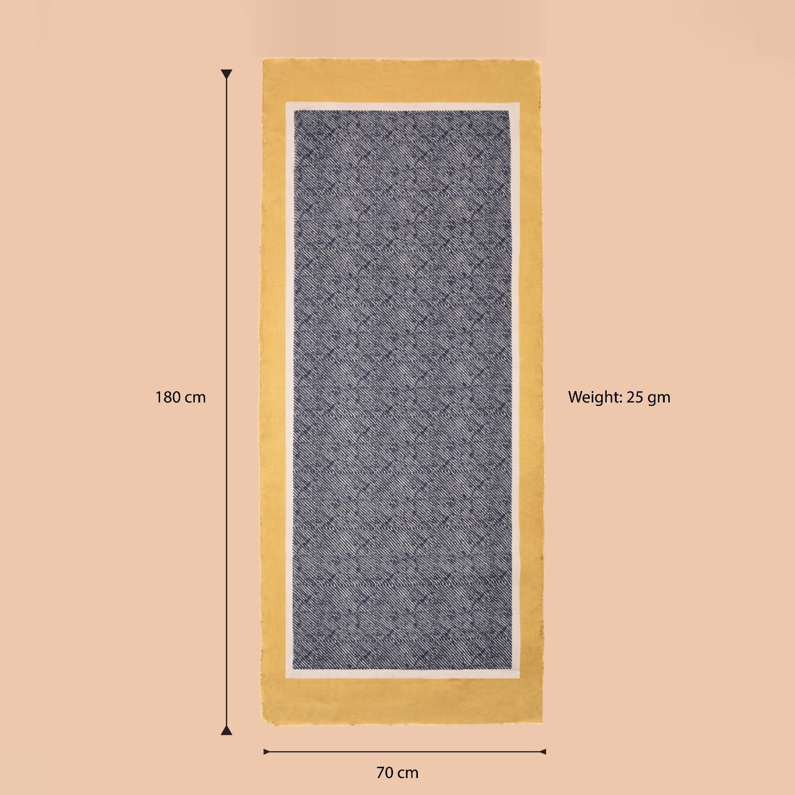 Brighten your look with this elegant 100% pure silk stole, featuring a bold yet minimal design. The stole combines a rich golden-yellow base with navy hand-drawn stripe accents, finished with a soft white edge for balance.