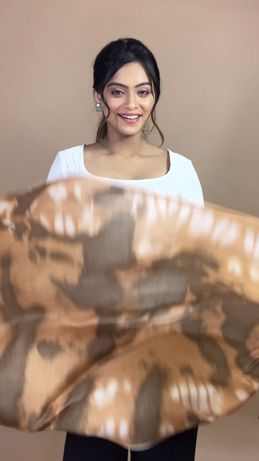 Wrap yourself in effortless style with this 100% modal stole, designed in earthy brown tones with a unique copper tie-dye effect. The natural color play gives it a warm, contemporary look — versatile enough to complement both casual and formal outfits.