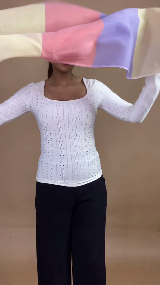 Brighten up your style with this 100% Organic Cotton stole, designed in bold horizontal color blocks of coral, olive green, and deep navy. Its modern geometric layout brings a fresh, contemporary edge while maintaining timeless elegance, making it the perfect statement accessory for every season.