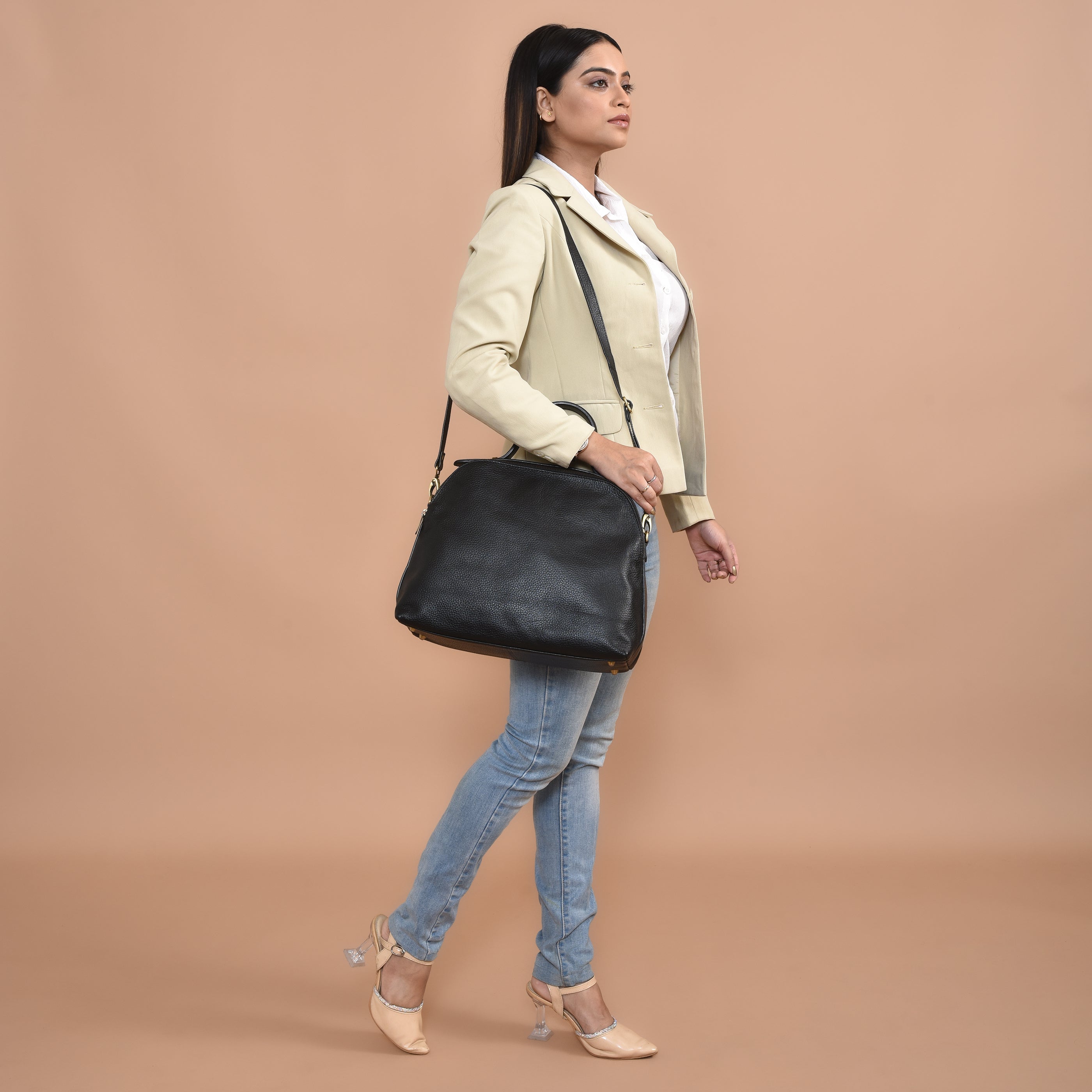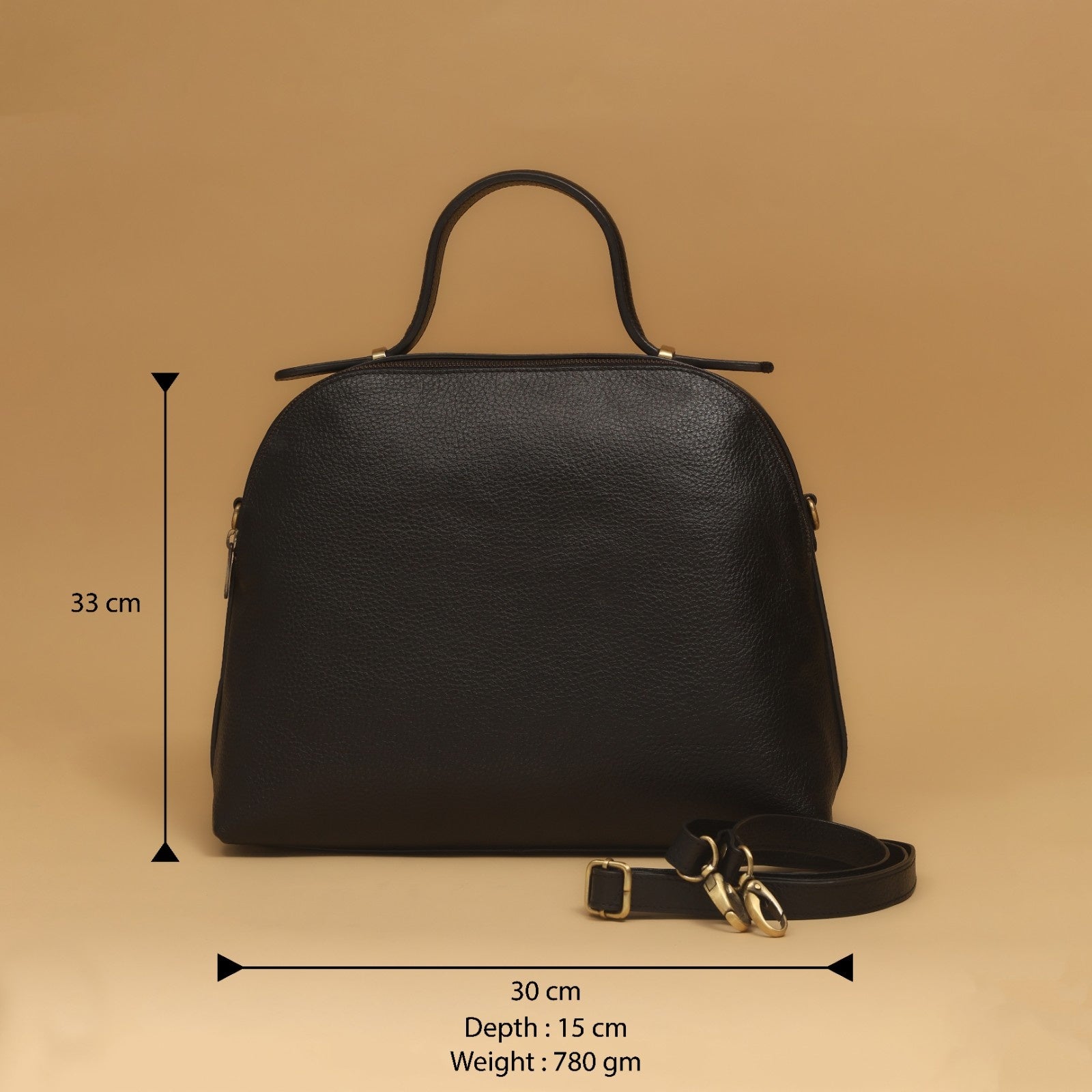 The curved top, inspired by a crescent moon, adds a graceful touch, while the gold-tone hardware and detachable shoulder strap offer versatile styling options. Spacious enough for your daily must-haves, it’s the perfect bag for work, weekends, or evenings out.