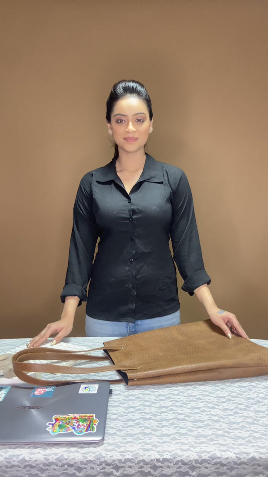 Its spacious interior effortlessly accommodates your laptop, books, groceries, or travel essentials, making it ideal for work, errands, or weekend getaways. The long, reinforced straps ensure comfortable wear on the shoulder, while the minimalist silhouette and rich brown tone complement any outfit — casual or refined.