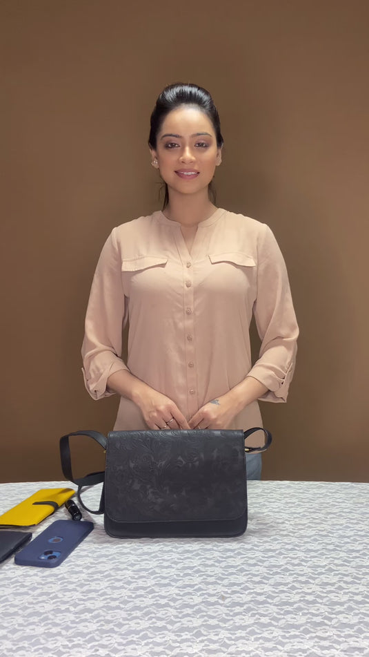 Timeless elegance meets sustainable design in the Eco-Leather Black Embossed Shoulder Bag. Crafted from premium eco-leather, this bag features a rich black finish with intricate embossed detailing, adding depth and sophistication to your style. Its structured silhouette and versatile design make it perfect for both everyday use and evening occasions.